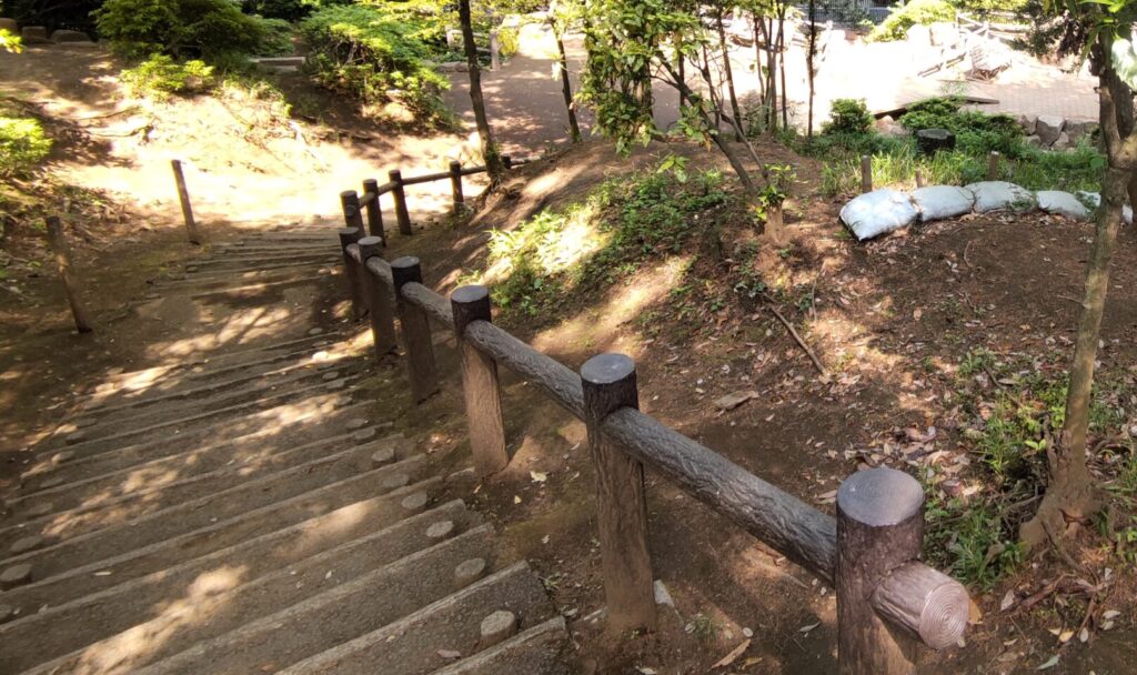 公園全体で高低差があり、上下には園内の階段をつかいます。山を切り開いてつくられたようで、斜面の傾斜が少しきついため足腰が悪い方は全体を回るのが厳しいかもしれません。