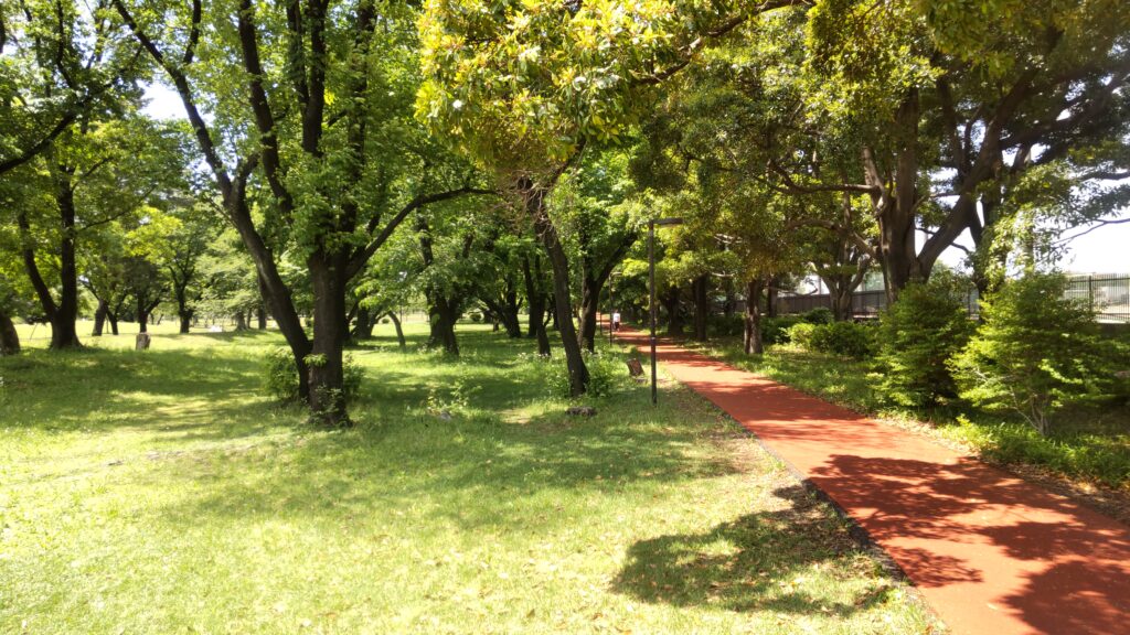 こちらもゴムチップ舗装で足に優しく、木影が多いため夏場でも走りやすい環境です。