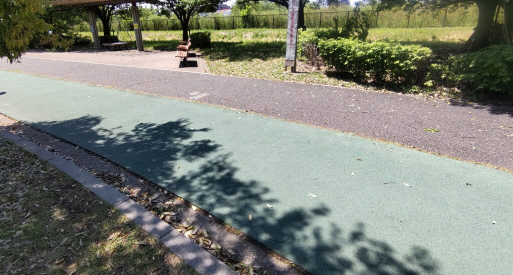 通路の隣にあるコースは緑色のゴム舗装のため、足に負担がいきにくい構造になっています。ジョギングに限らずご自身のペースでウォーキングなども楽しめます。