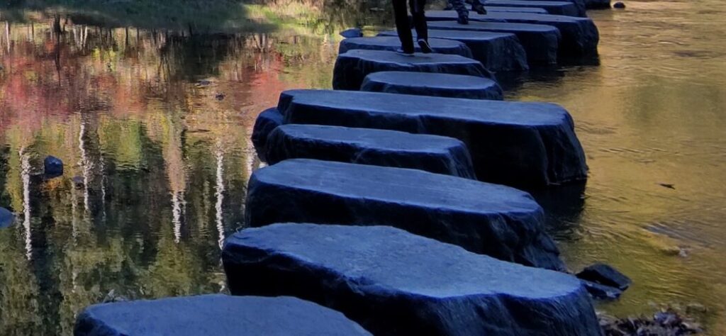 嵐山渓谷へ行くまでに足元が若干不安定な箇所を抜けていき、渓谷も高低差があるため散策するだけでいい運動になります。