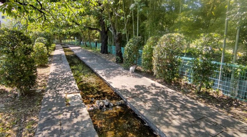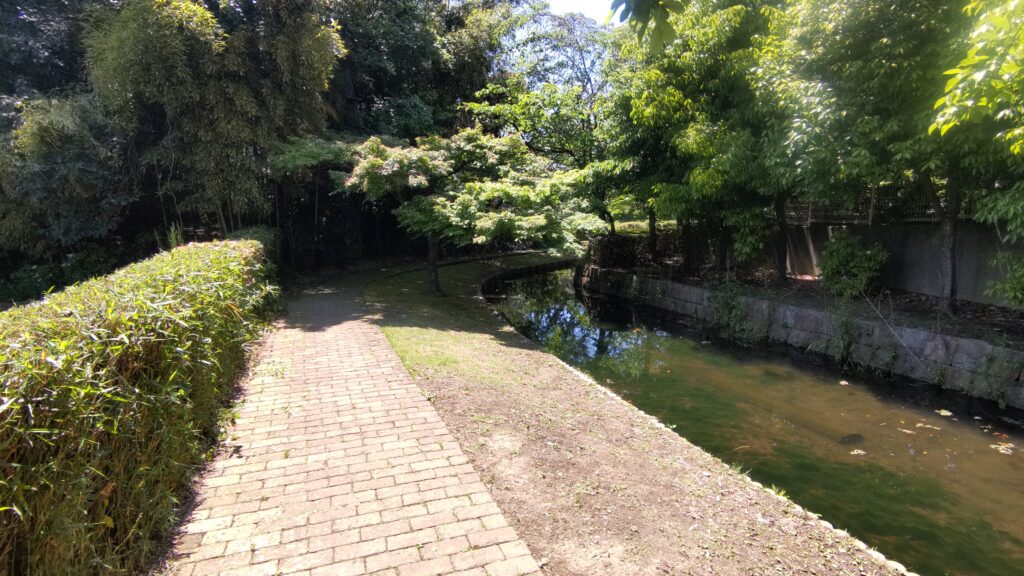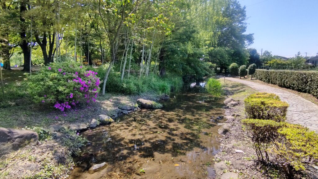 地下水を利用したせせらぎが園内を流れ、せせらぎに沿って歩いて行けば鴨川の方まで歩いていくことができます。自然に囲まれた中で勢いがそこまで強くないせせらぎを観察できるため、大変リラックスできるでしょう。