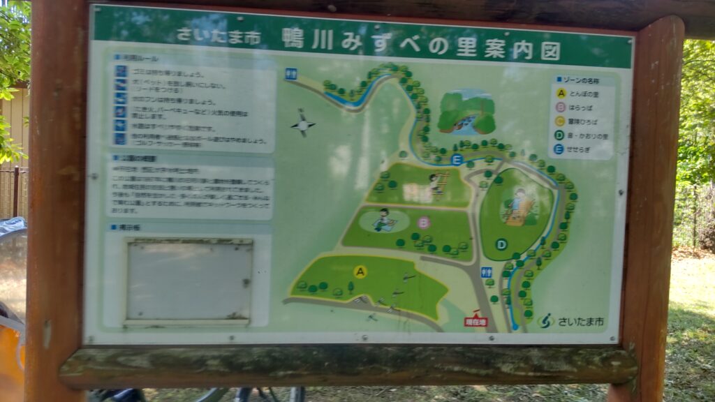 googleマップでは「鴨川みずべの里・彩の国 音かおりの里」というスポット名で検索がでてきます。これだけだと「鴨川みずべの里」・「彩の国 音かおりの里」の2つのエリアをあわせて1つの公園と感じるでしょう。
