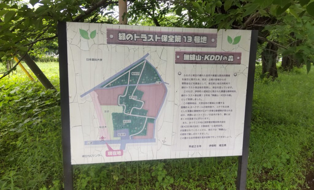 「無線山・KDDIの森」は埼玉県伊奈町に位置する樹林地です。2013年に「緑のトラスト保全地」第13号地として指定されました。