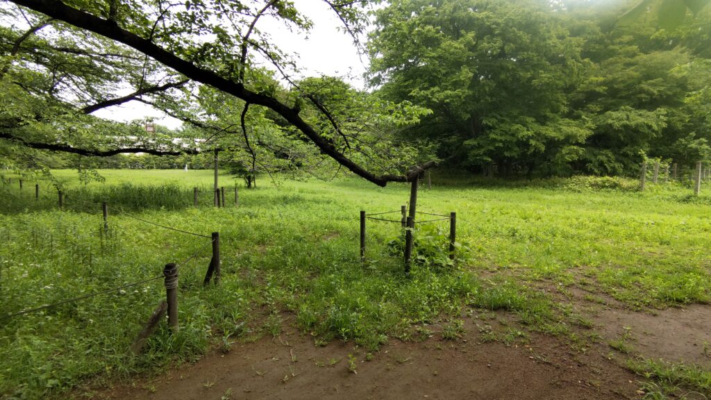 以前はKDDI研修所の前庭として使われていた場所が芝生広場として残り、無線山・KDDIの森で数少ない開放的なエリアとなっています。