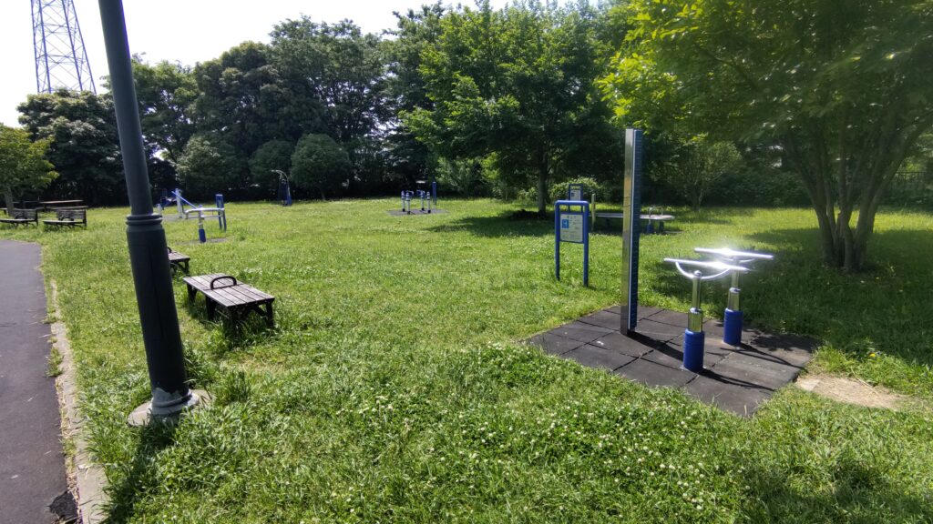 新郷東部公園内の東側には健康遊具が多数設置されているエリアがあります。