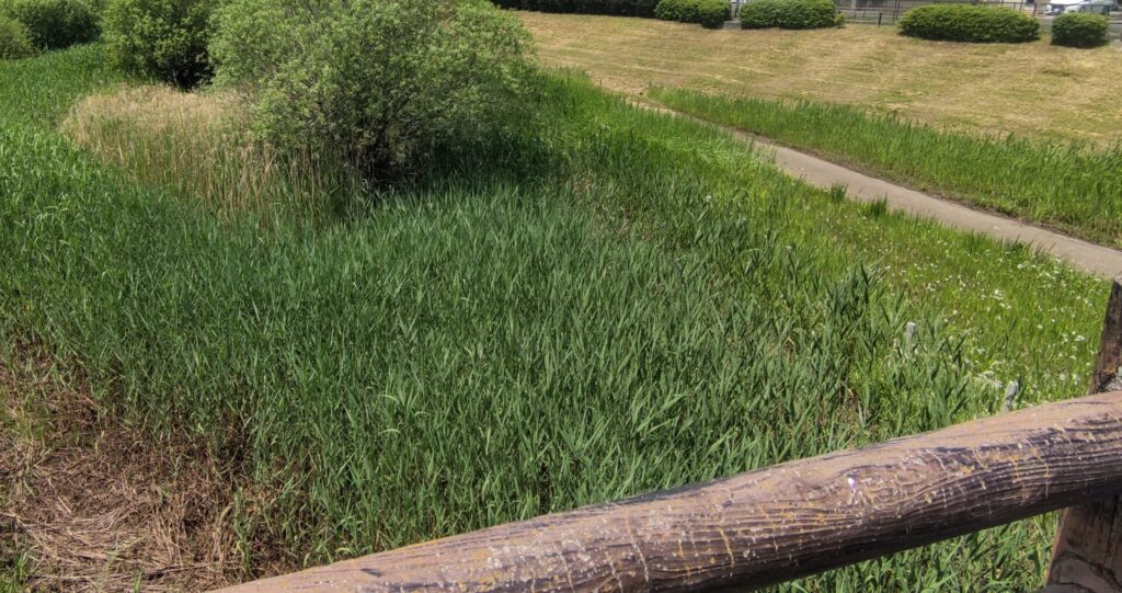 公園の北側にある水辺の観察広場は、水辺に植物と自然の情景を最も感じることが出来るエリアです。細長い湿地帯になっており、中心部分は橋が架っています。