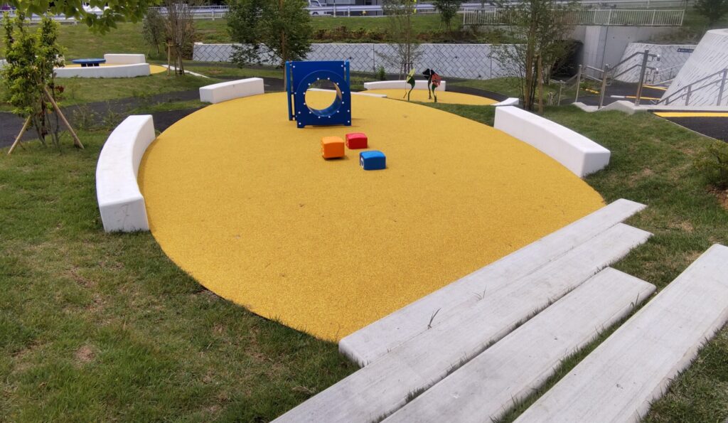通路はアスファルトですが、丘部分は芝生のためお子様でも安心して利用可能なのは有難いです。反面足腰が悪い方などは丘に登るのが少し大変かもしれませんので、無理せず利用しましょう。