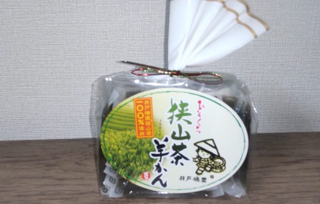 「株式会社 長登屋」さんの「ひとくち 狭山茶羊かん」は、狭山近辺で購入できるお土産です。