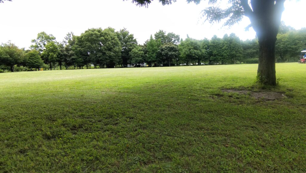 芝生広場は園内北側にあり、非常に解放感がある広々したエリアです。芝生がきちんと整備されているため、お子様でも安心して利用できます。