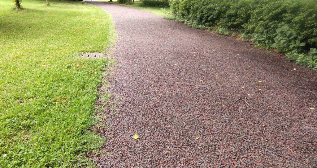 全てではありませんがゴムチップ舗装の箇所もあり、通路が広いため安心して利用可能です。園内の自然の中で運動できるため、ぜひ活用してみてください。