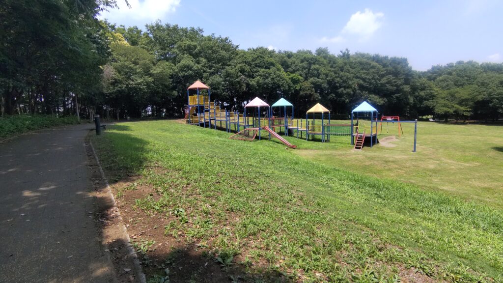 芝生広場には数は少ないですが遊具が設置されており、小さなお子様が思い切り遊ぶことができます。