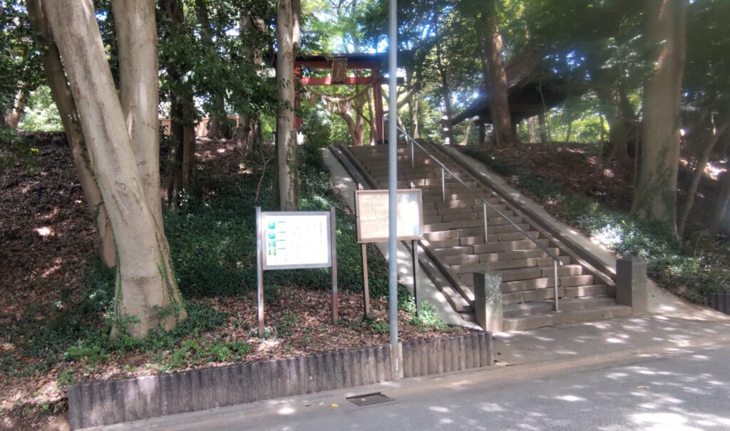 公園から石段をのぼっていきますが、奥行きが短いため足が大きい方は登りにくいかもしれません。石段の上に境内が広がっており、正面に神社があるためお祈りが可能です。